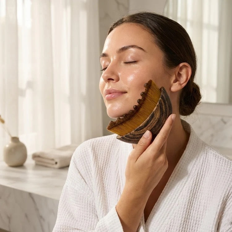Our Lymphatic Drainage Face Brush is designed to gently stimulate circulation and support natural lymphatic flow—helping to visibly reduce puffiness, sculpt your features, and reveal a fresher, more radiant-looking complexion in minutes.